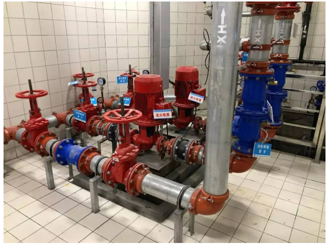 ⑶ 消防水泵安装根据设计要求定型号、定位置,安装顺序为止回阀;阀门依次与设备紧固,阀门安装手轮方向应便于操作,具体安装技术参照泵房的安装。
